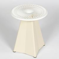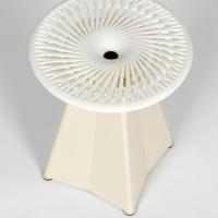 Le tabouret de Jean Prouvé nous inspire par son évidence structurelle. Une forme simple, logique, sans superflu. Nous en proposons une réinterprétation avec notre langage. L’assise devient un motif, une petite architecture qui se déploie depuis le centre, avec des strates qui se soulèvent et créent un mouvement plus vivant. Ici, la structure devient le dessin.