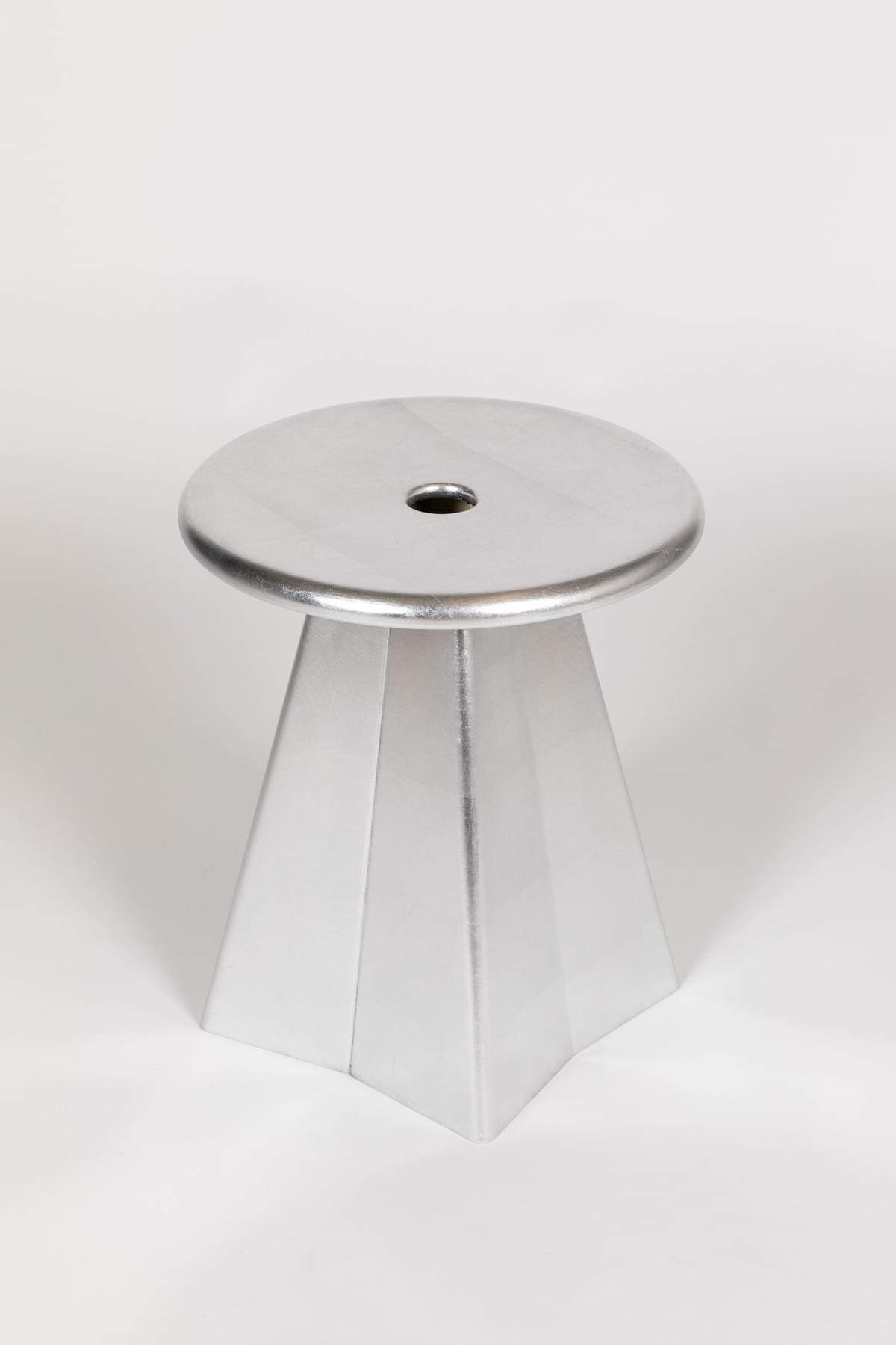 L’objet reprend les codes de la modernité mais vu par nos grands-parents. C’est en quelque sorte une antiquité moderne où l’on serait passé de la dorure à la feuille d’or à celle de l’aluminium.