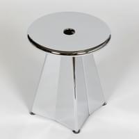 Un tabouret de Jean Prouvé en métal plié, peint d’une couche de peinture industrielle, pièce de design du quotidien. Un tabouret de Jean Prouvé, en métal miroir, voilà un pas de côté inattendu qui installe cet objet fonctionnel dans un autre univers et qui révèle une complicité entre les objets comme entre les créateurs.